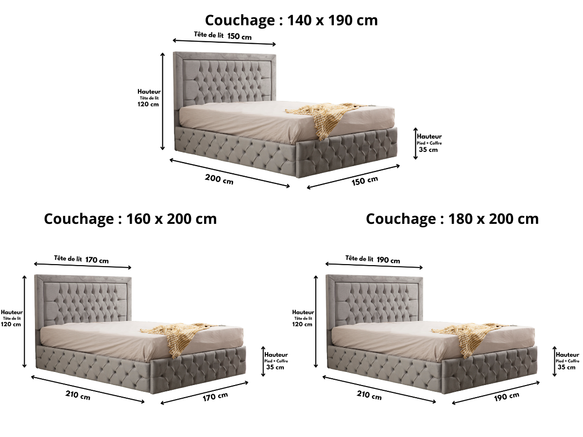 ✓ Structure & Matière : Cadre et tête de lit en panneau aggloméré, capitonnage en mousse HR, tissu velours