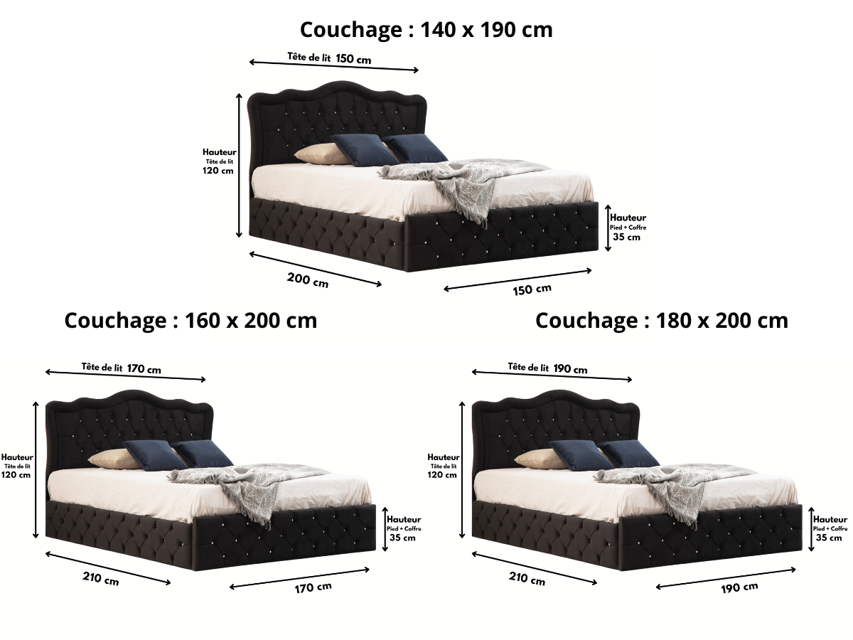 ✓ Structure & Matière : Cadre et tête de lit en panneau aggloméré, capitonnage en mousse HR, tissu velours